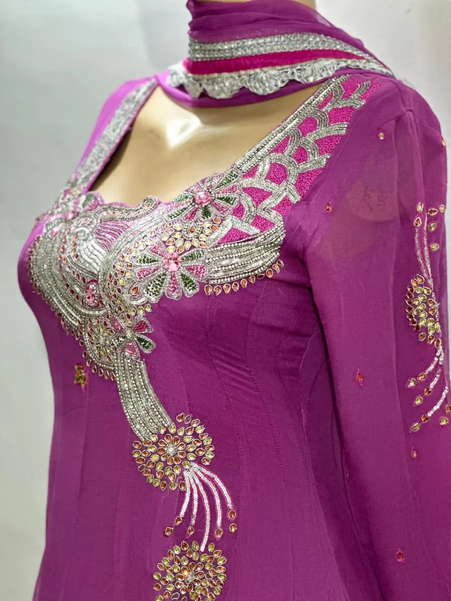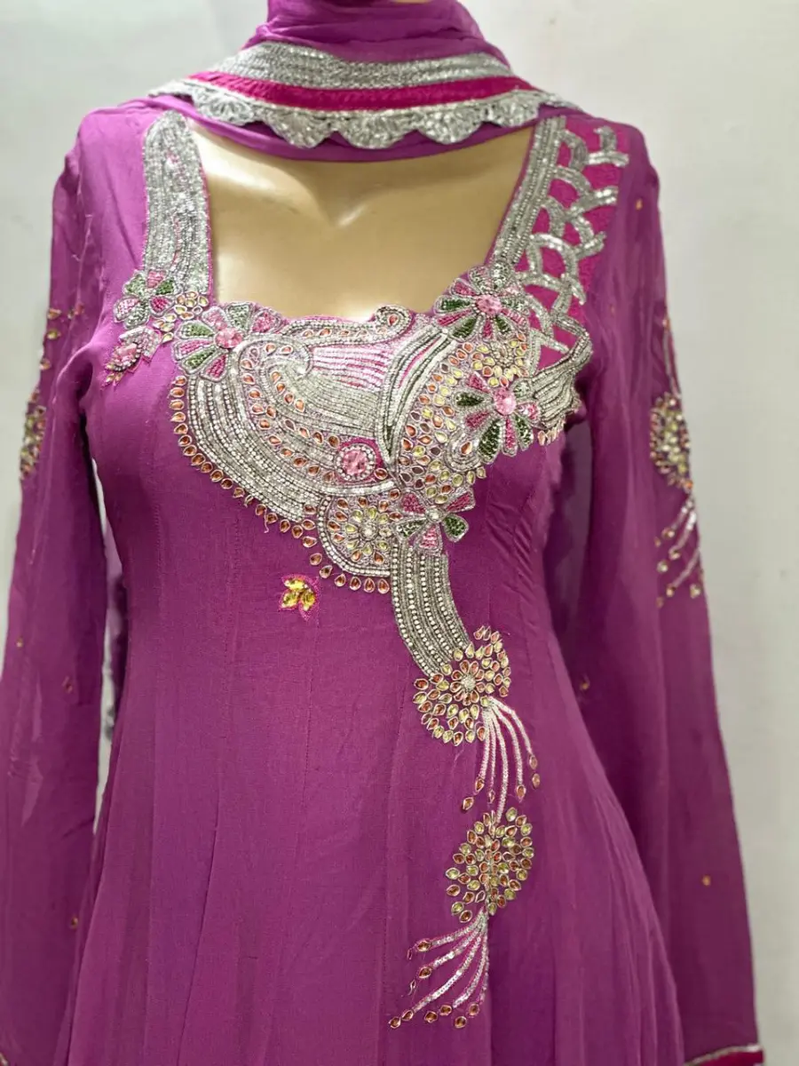 Hand embroidered kalidar suit